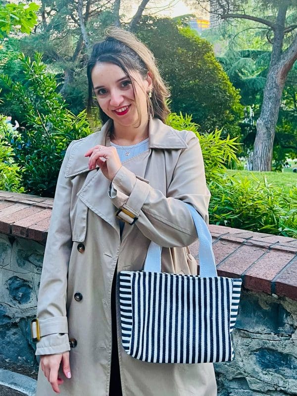 Lacivert Saplı Kanvas Kumaş Mini Boy Çanta